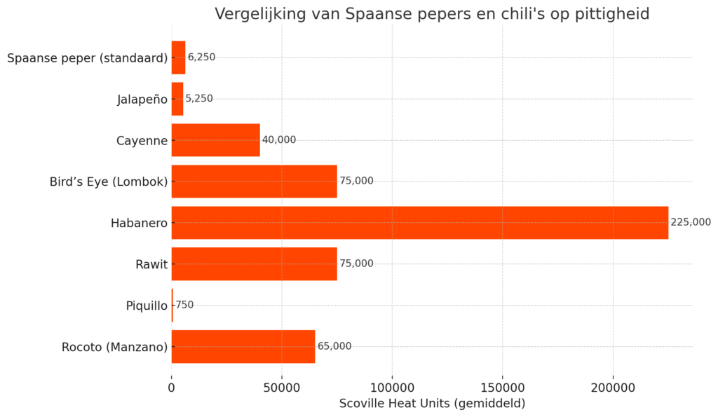 Vergelijkingstabel Spaanse pepers en andere chili’s